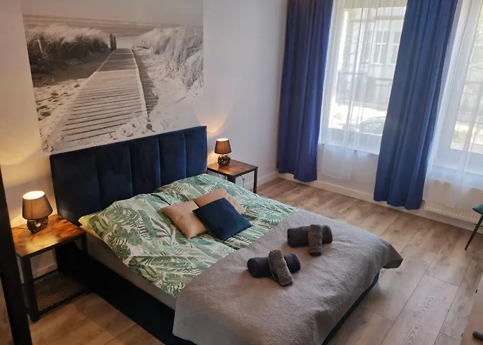 Daire, Ustka şehir merkezine 1 km uzaklıkta ve Ławeczka Ireny Kwiatkowskiej'a uzak değildir. Buradan 700 metre uzaklıkta Kosciol pw. Najswietszego Zbawiciela yer almaktadır. Yakınlarda bulunan Dym Na Wodzie, Cafe Mistral restoranlarına yürüyerek 5 dakika içinde ulaşılabilir. Plaza Orzechowo'a kısa sürüş mesafesinde ve Promenada Nadmorska'a yakındır.